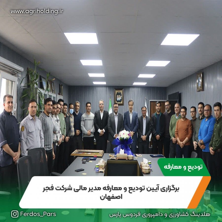 آیین تودیع و معارفه مدیر مالی شرکت فجر اصفهان با حضور آقای ربیعی معاونت مالی امور مجامع و بازرگانی هلدینگ فردوس پارس ، مدیران، کارشناسان و همکاران واحدهای مالی برگزار شد.