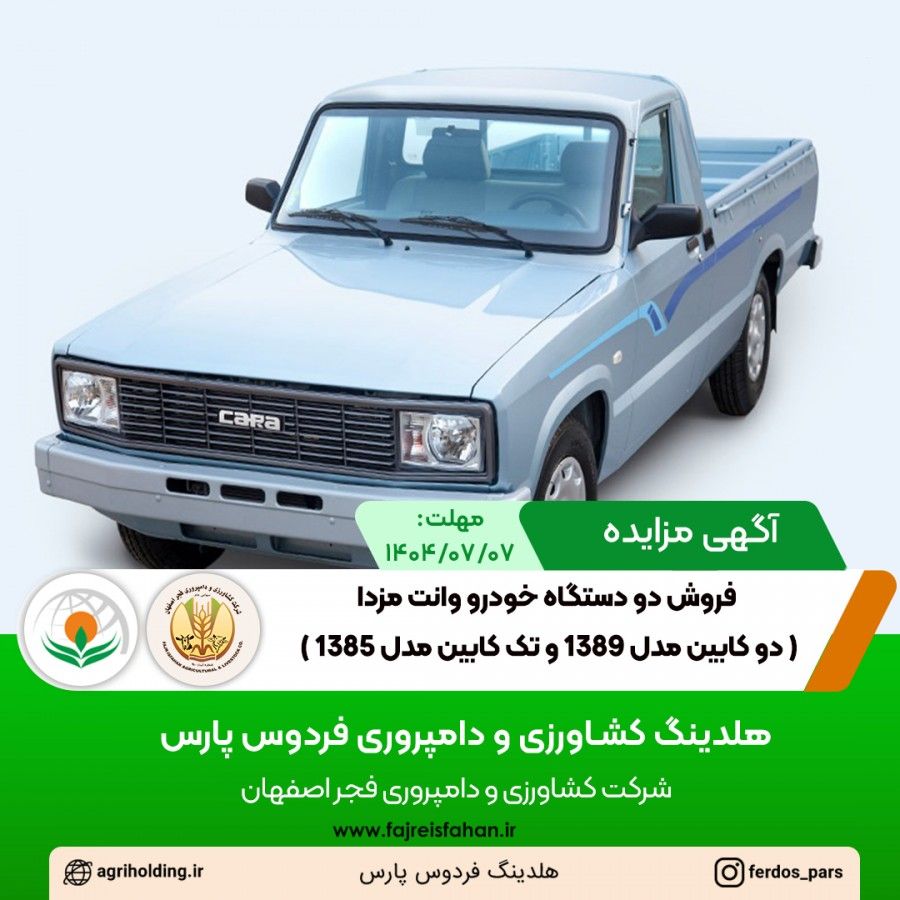 شرایط مزایده فروش دو دستگاه خودرو وانت مزدا ( دو کابین مدل 1389 و تک کابین مدل 1385 )