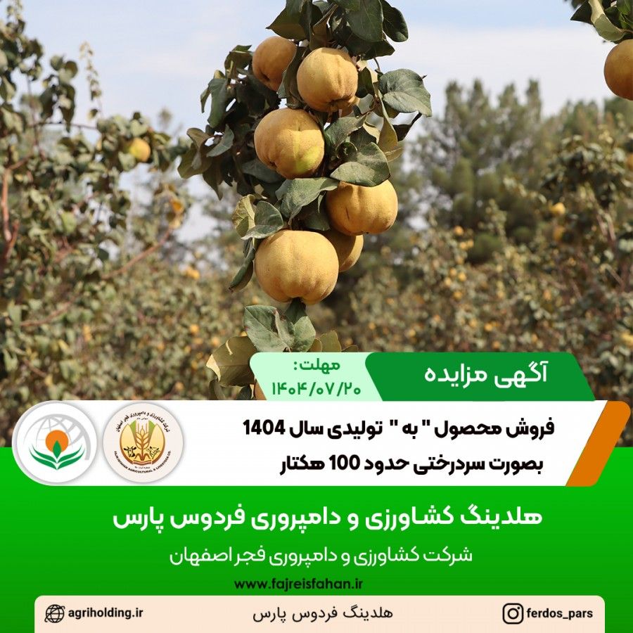 مزایده فروش محصول " به " تولیدی سال 1404 بصورت سردرختی حدود 100 هکتار ساعت 10:00